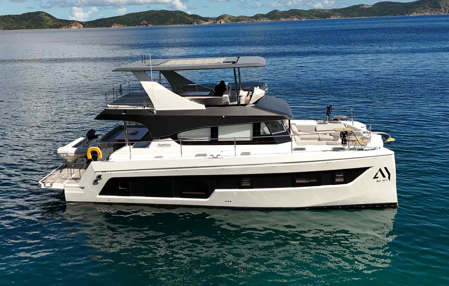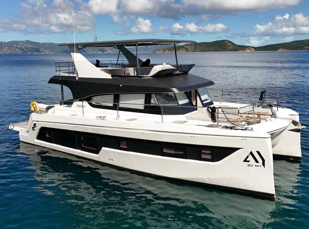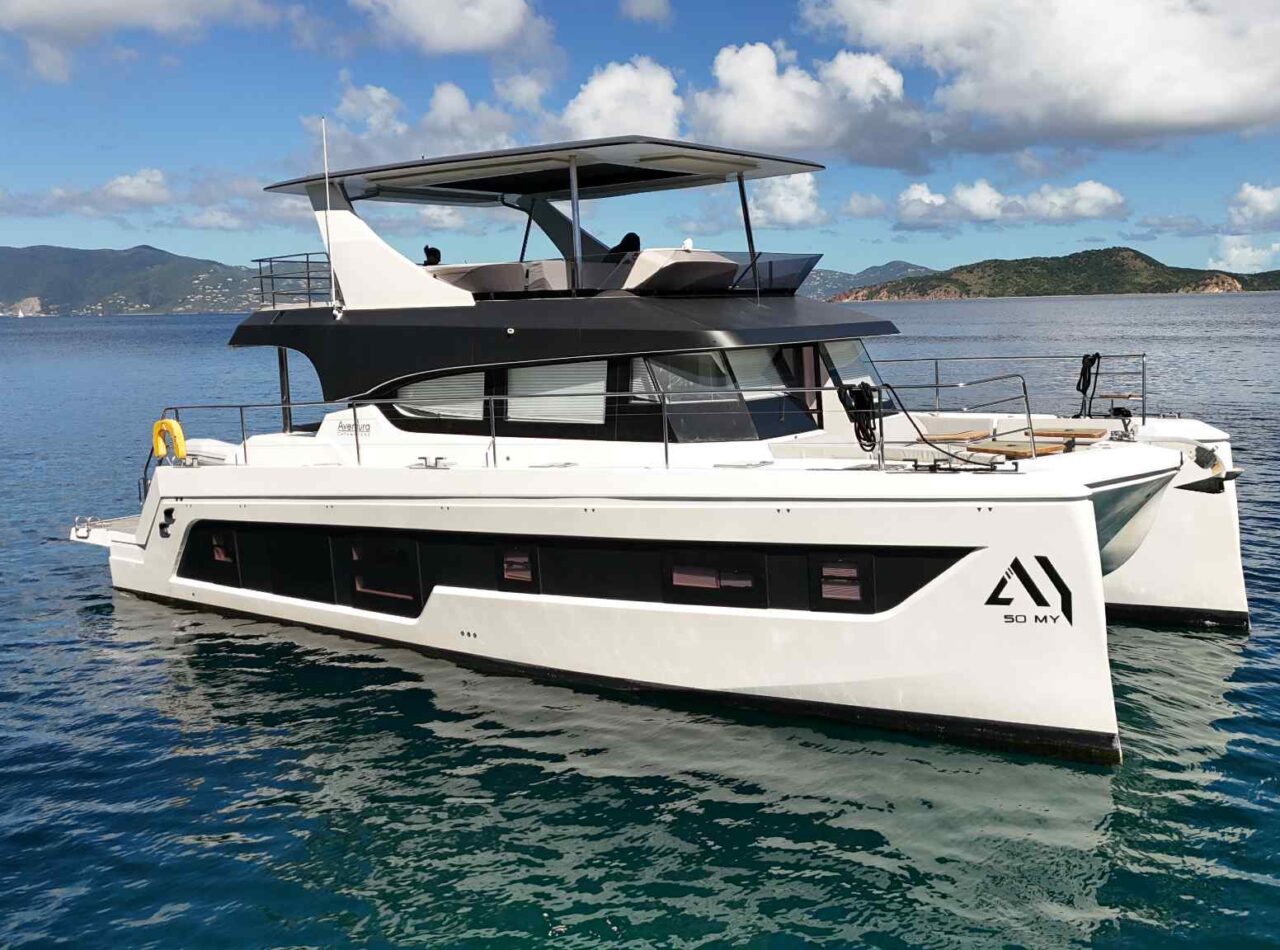 The Aventura 50MY powercat is an incredible option for BVI charters, offering an amazing 5 double cabin/5 head layout for up to 10 guests!