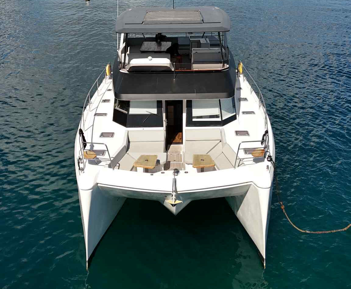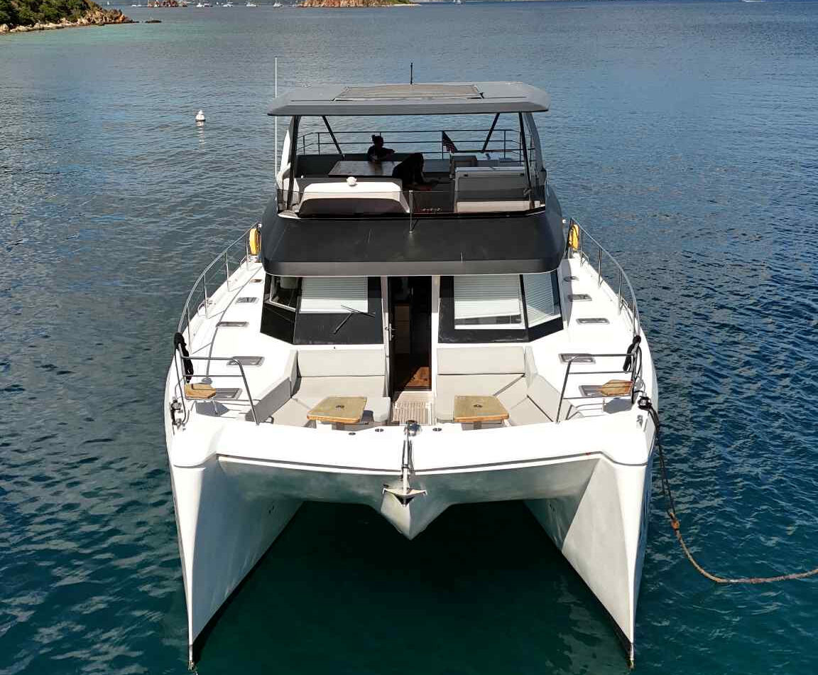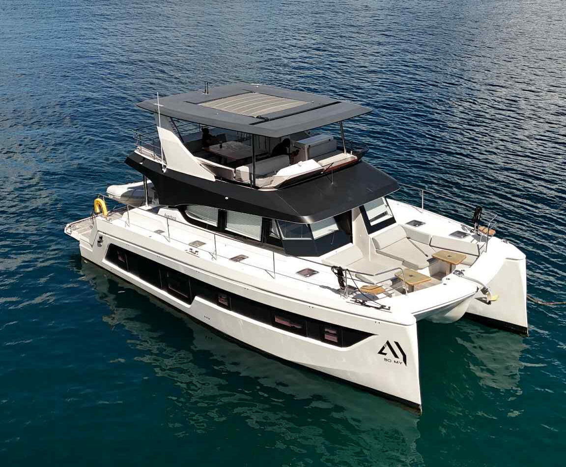 The Aventura 50MY powercat is an incredible option for BVI charters, offering an amazing 5 double cabin/5 head layout for up to 10 guests!