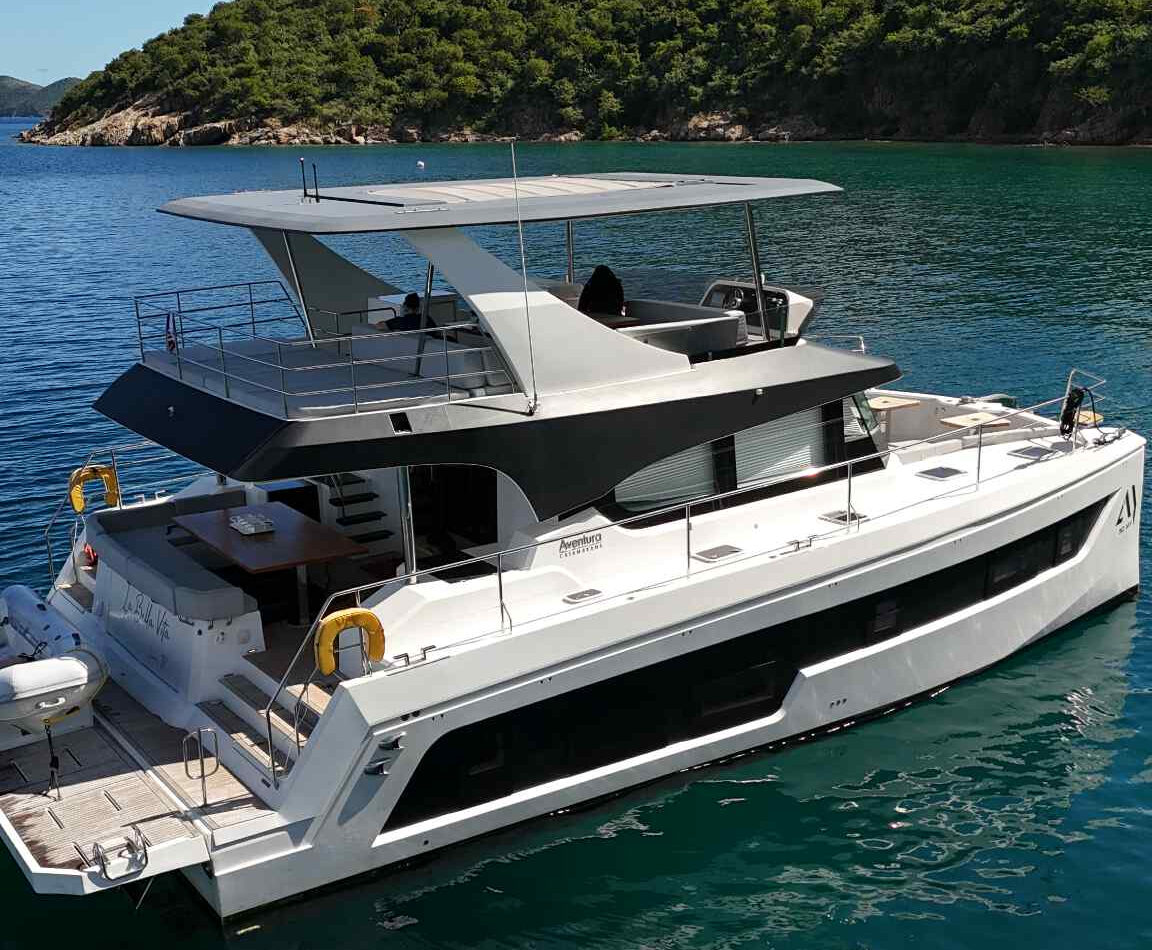 Enjoy an amazing charter aboard the ‘multihull of the year’ winner, the Aventura 50MY! With an unprecedented 5 double cabin/5 head layout, La Bella Vita is truly a stand-out in the BVI bareboat charter market!