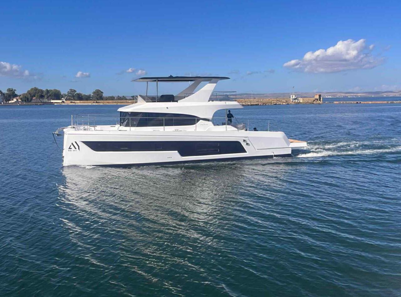 The Aventura 56 is equipped with Yanmar 550, direct-drive engines with a bow thruster to make operation a breeze. The powercat is also equipped with the most popular features, specifically designed and requested by our charter guests including: full-beam hydraulic swim platform, watermaker, ice maker, full-size refrigerator/freezer, and a large seating/dining area on the aft deck and the flybridge!